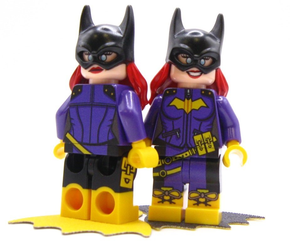 This figure is printed side leg, front & back, double sided head.   It has booted legs. Her Cowl is becoming rare and difficult to find, priced accordingly because of the official cowl. Comes with a double sided yellow and black cape. Excellent color matching for Dark Purple.